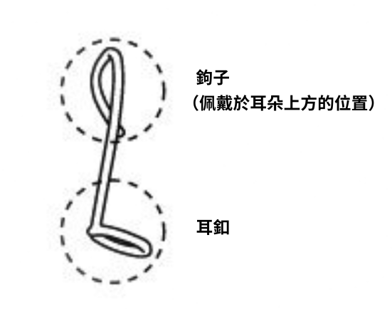 4. 鉤子與耳釦兩處皆可調整,即使像圖示一樣,耳釦部分稍微超出耳朵佩戴也沒有問題。